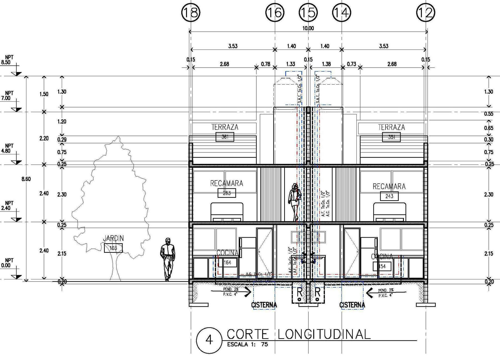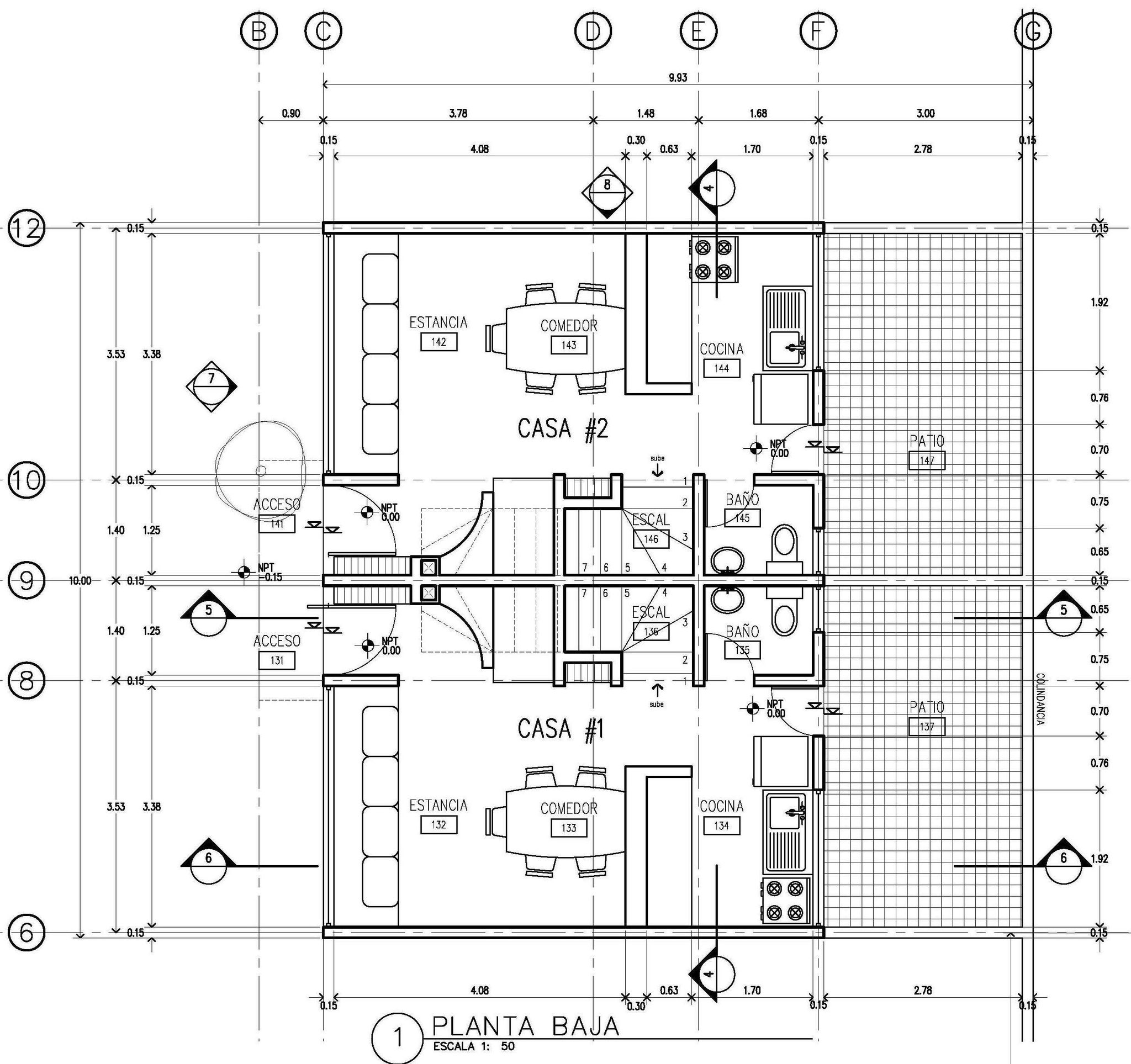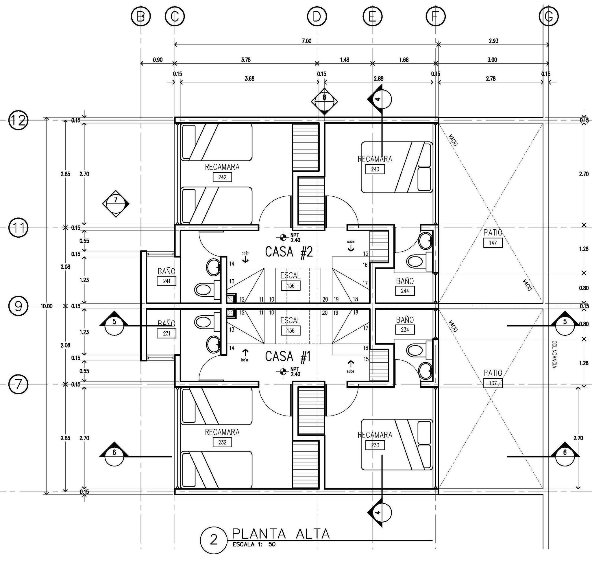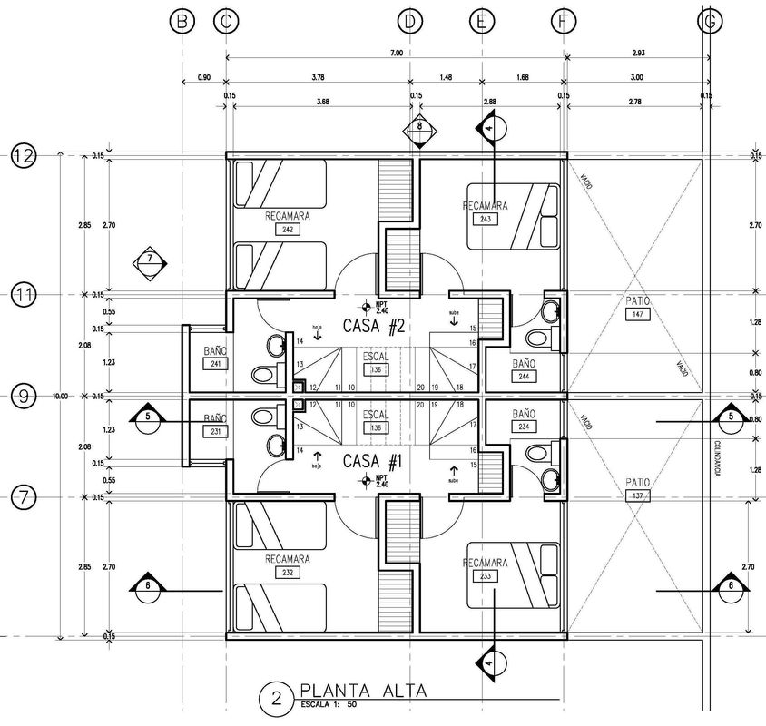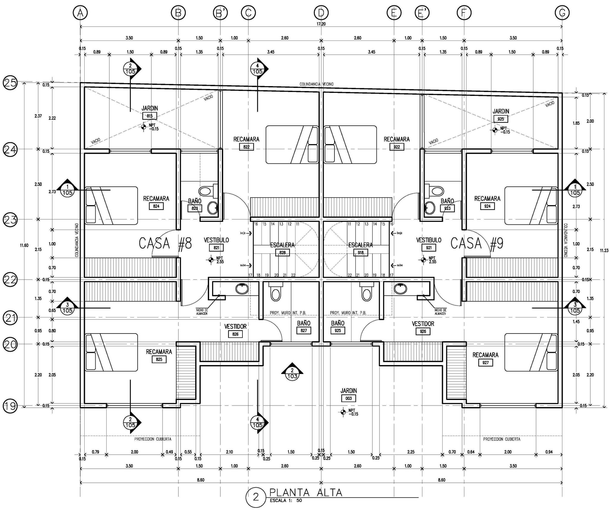 Respecto al proyecto, lo planeado fueron 9 viviendas (2 grandes, 4 chicas, 2 medianas, y 1 Loft), comenzando por el Loft y terminando al fondo con las grandes; esto en dos bloques, el primer bloque -contiene todas las viviendas menos las grandes- orientado en el costado derecho -orientación norte-; y en el fondo el segundo bloque con las viviendas grandes; todo ello a partir de espacios abiertos -acceso, cajones de estacionamiento, rotonda vehícular, banquetas en frentes, jardineras, etc.-, que permiten a la unidad respirar y no verse "apretada".