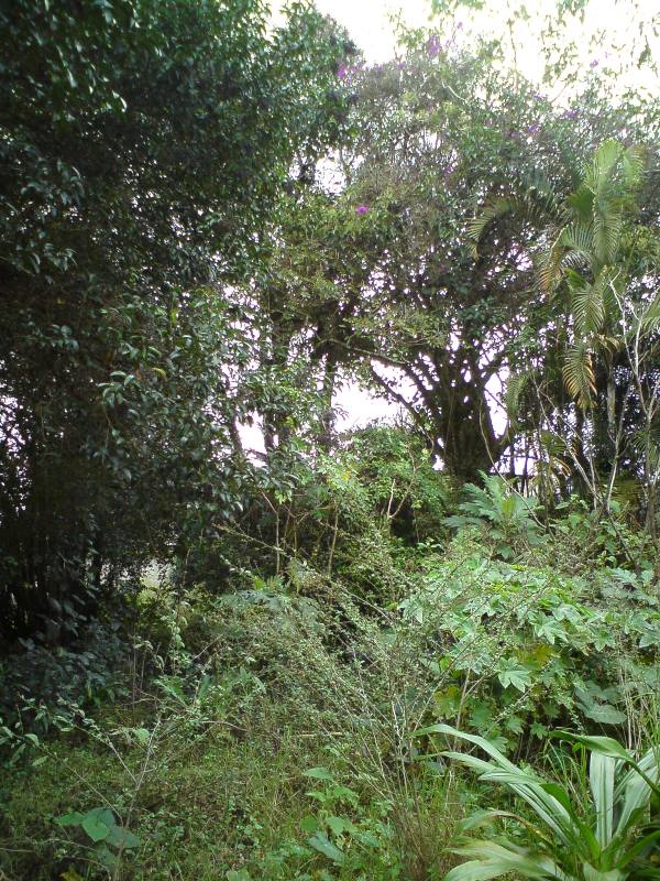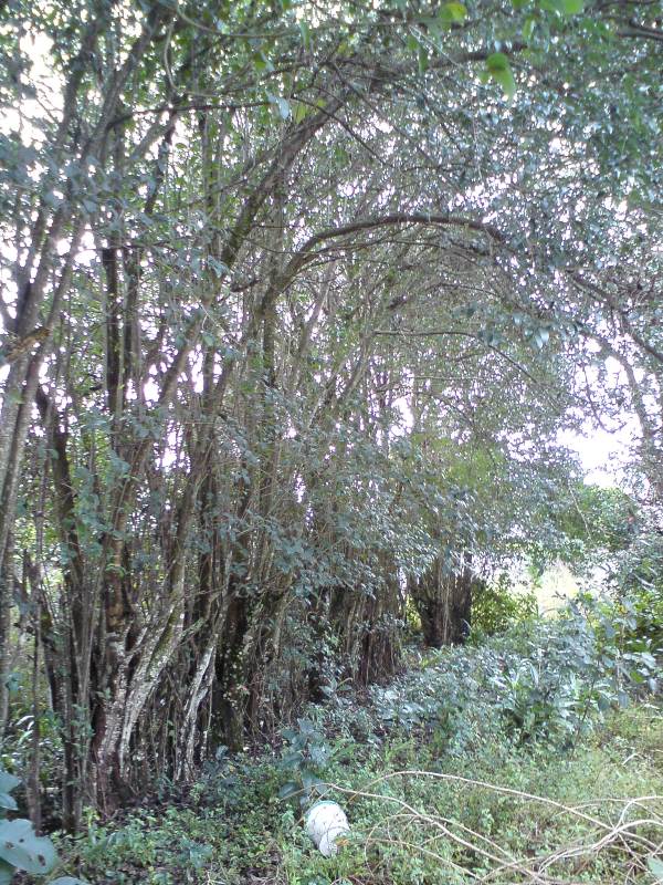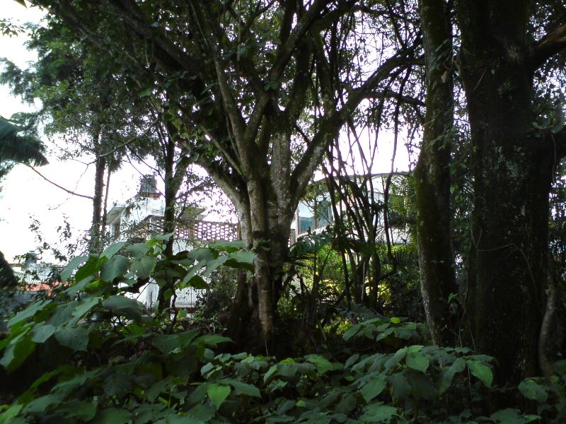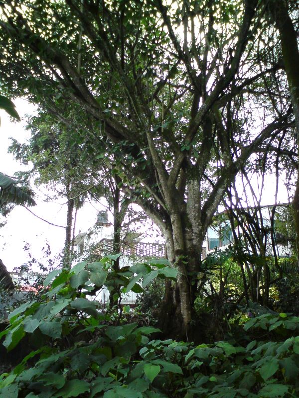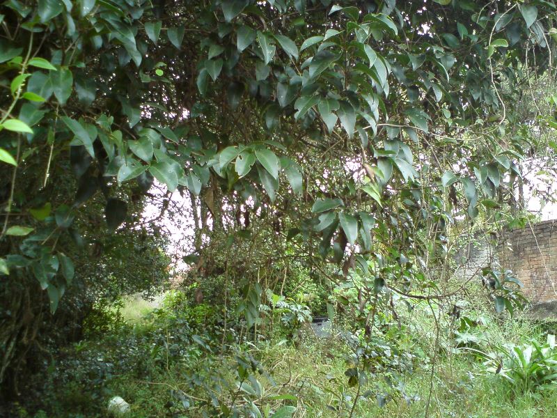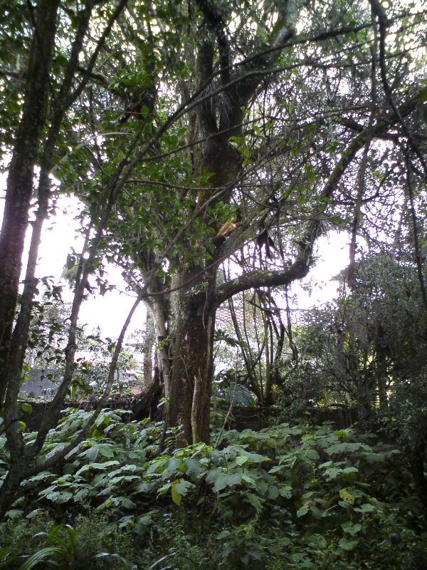 Actualmente una parte de los árboles que se conservaron no están -bien me decía el vecino extinto, si los árboles dieran señal de internet, todos los cuidarían-, pero afortunadamente se han conservado los espacios verdes con árboles de ornamentación que permiten darle vida al espacio abierto. También los árboles que están son los cuidados por los habitantes que disfrutan de lo verde, y entre ellos se encuentra un árbol único que tiene la curiosidad de haber crecido sobre el tapial de piedra divisorio -ambos vecinos aceptaron conservarlo-, y se enmarcó como parte del diseño mismo.